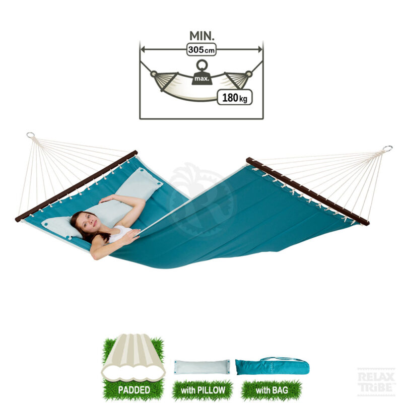 ![American Dream Petrol: Hamaca-Acolchada XL [1-2p] con Barras+Almohada - Imagen 2](https://relaxtribe.es/wp-content/uploads/american-dream-petrol-double-xl-padded-hammock-with-bars-pillow-aqua-light-blue-detail-spec-1-500x500.jpg)