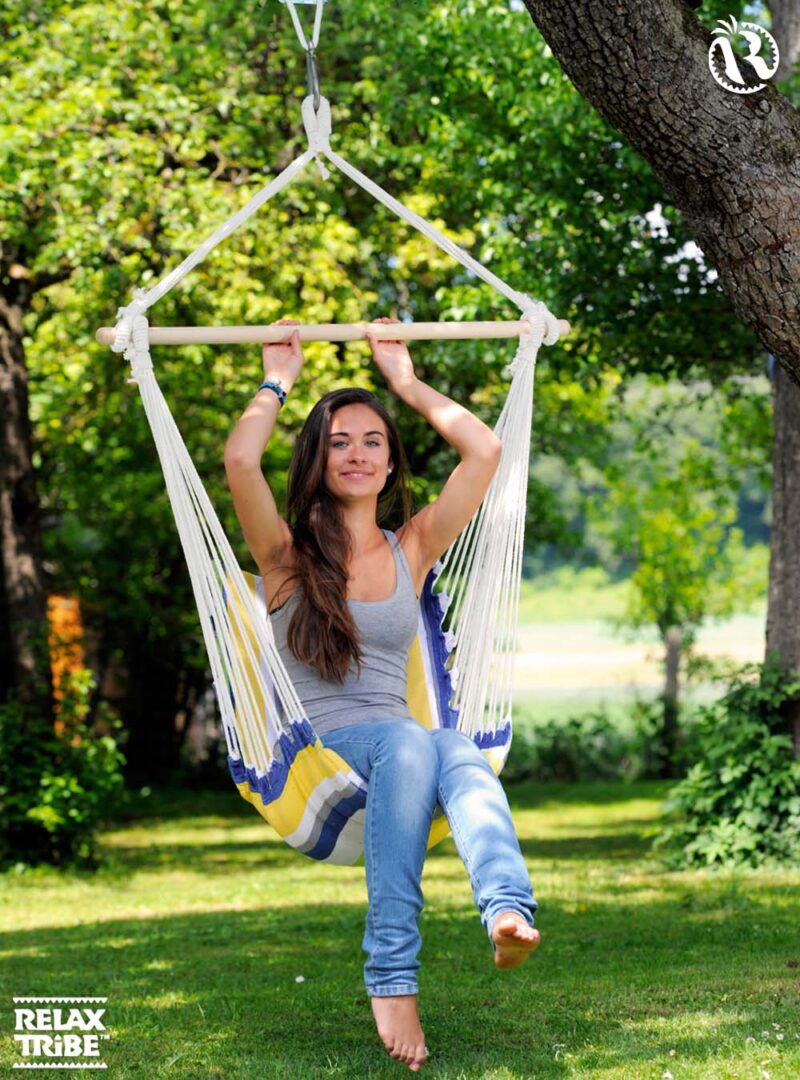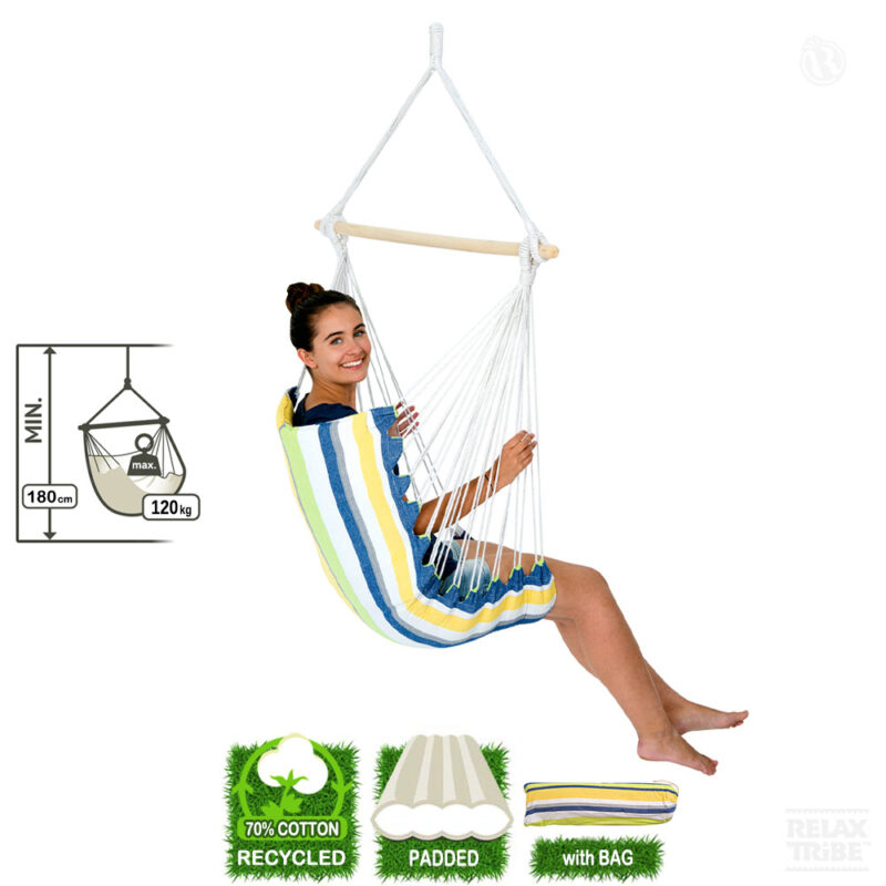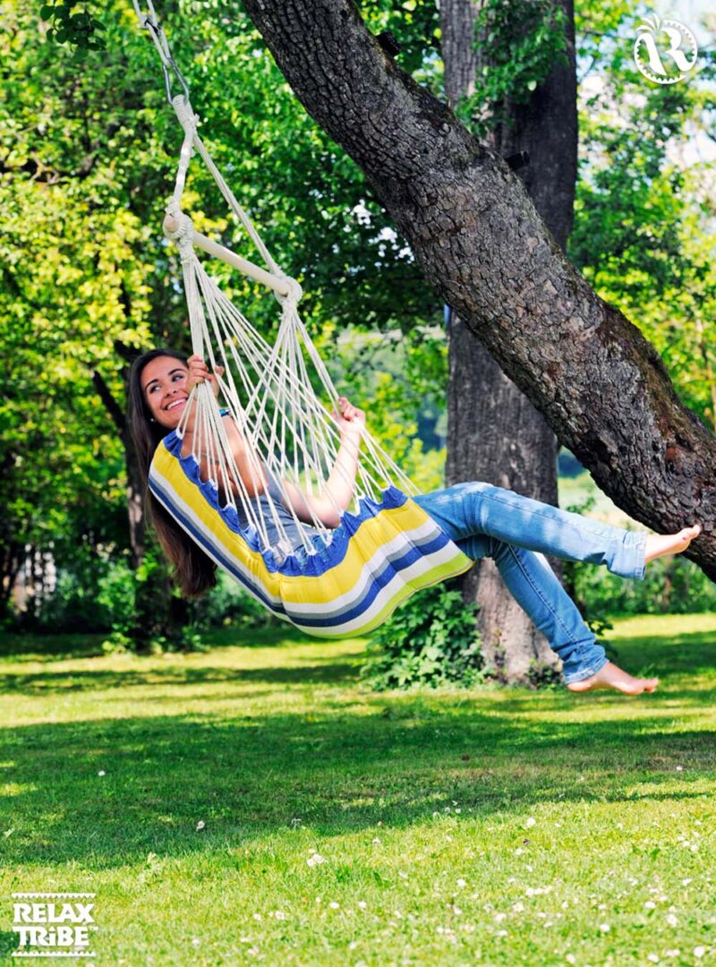 ![Belize Kolibri: Silla Colgante Individual [Algodón Reciclado] Acolchada - Imagen 5](https://relaxtribe.es/wp-content/uploads/pattern-kolibri-weatherproof-hammock-multicolor-yellow-textile-detail-1-500x500.jpg)