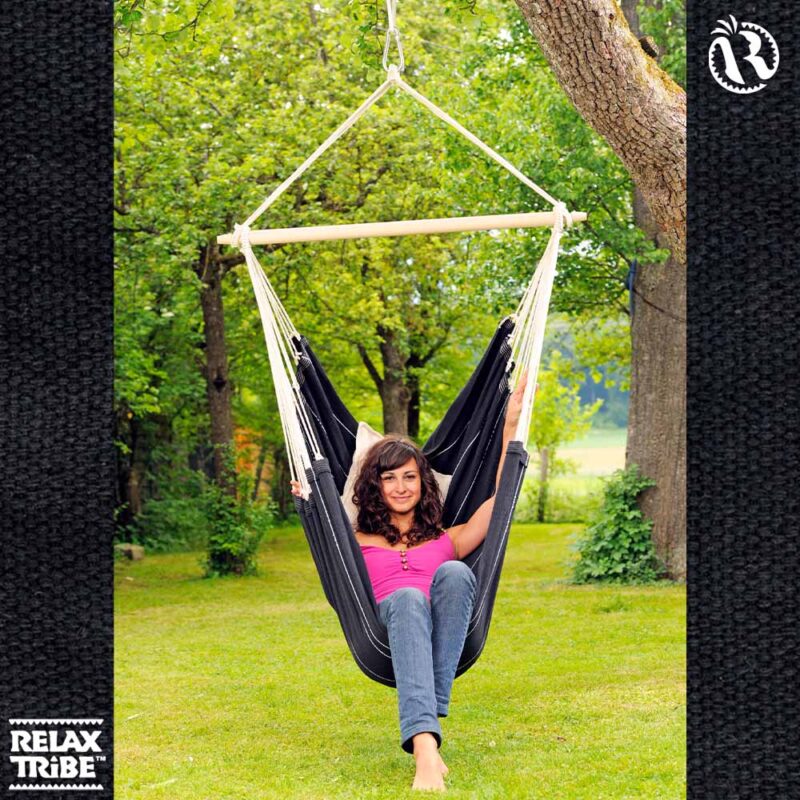 ![Brasil Black: Silla Hamaca XL [1-2p] Algodón Reciclado+Madera FSC /Hecha a Mano - Imagen 3](https://relaxtribe.es/wp-content/uploads/brasil-black-single-double-xl-hammock-chair-recycled-cotton-handmade-black-white-garden-wood-stand-1-500x500.jpg)