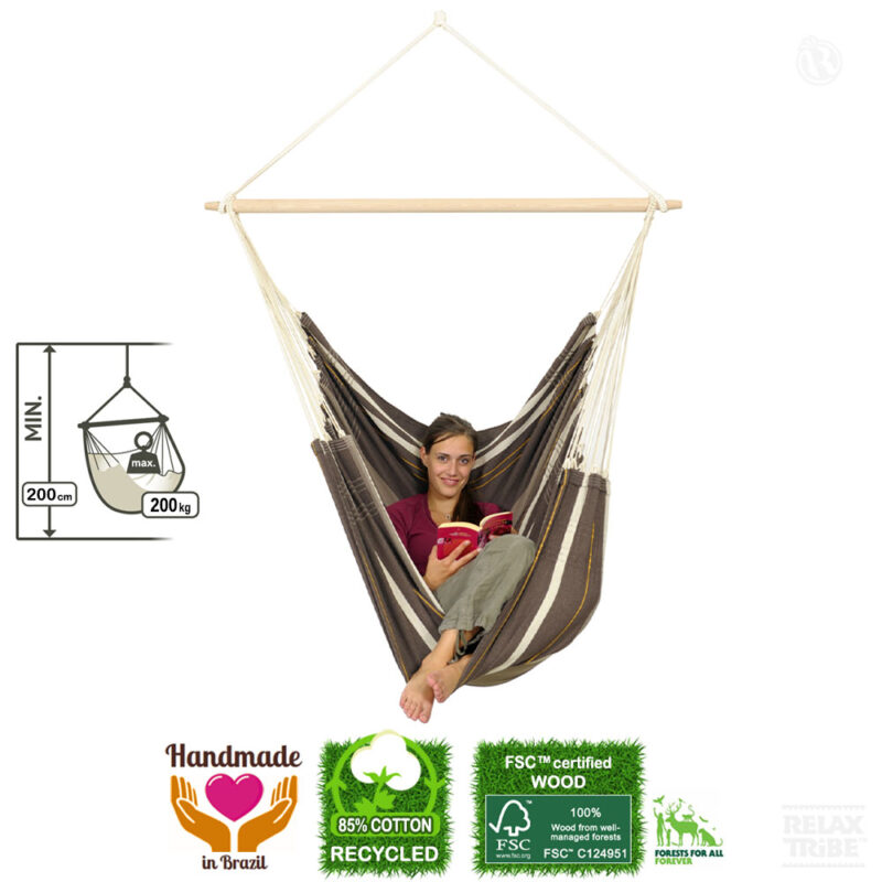 ![Brasil Gigante Café: Lounger/Silla Hamaca XXL [2-3p] Algodón Reciclado+Madera FSC /Hecha a Mano - Imagen 3](https://relaxtribe.es/wp-content/uploads/brasil-gigante-cafe-double-kingsize-xxl-lounger-hammock-chair-recycled-cotton-handmade-brown-tones-garden-tree-1-500x500.jpg)
