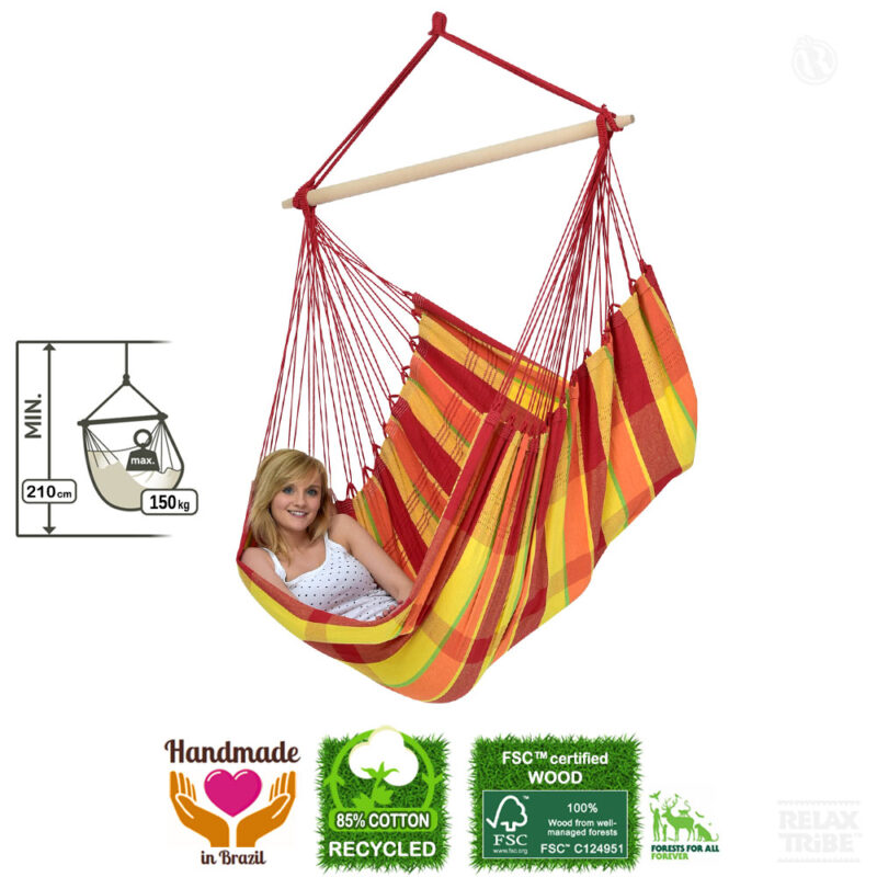 ![Brasil Papaya: Silla Hamaca XL [1-2p] Algodón Reciclado+Madera FSC /Hecha a Mano - Imagen 2](https://relaxtribe.es/wp-content/uploads/brasil-papaya-single-double-xl-hammock-chair-recycled-cotton-handmade-multicolor-orange-red-detail-spec-1-500x500.jpg)