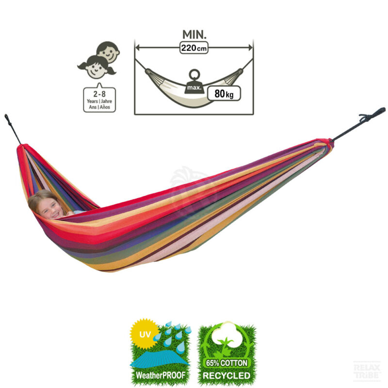 ![Chico Rainbow: Hamaca de Exterior para Niños [Casa/Jardín] - Imagen 2](https://relaxtribe.es/wp-content/uploads/chico-rainbow-weatherproof-kids-hammock-home-garden-multicolor-detail-spec-1-500x500.jpg)