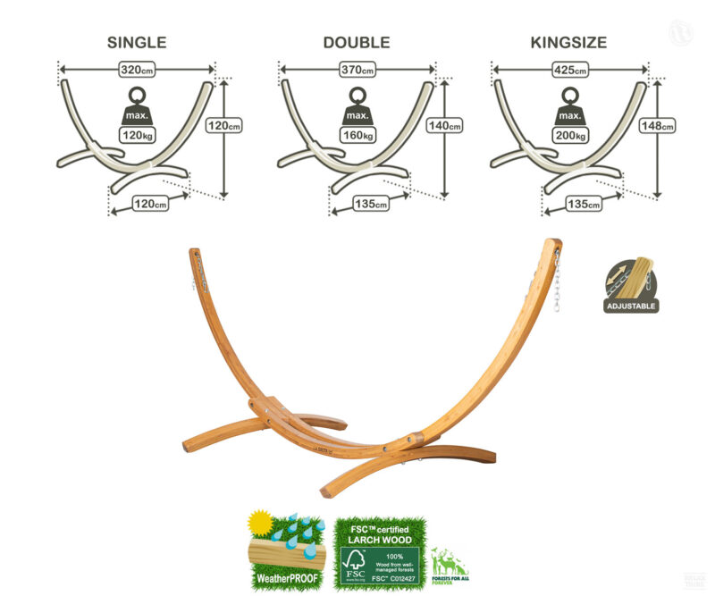 Soporte para Hamaca -Estructura de Madera Alerce-Siberiano [Clima-resistente / FSC™certificada] c/ Suspensión Ajustable [Casa y Jardín]