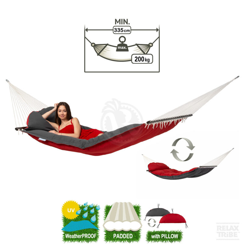 ![Fat Hammock Red: Hamaca-Acolchada de Exterior XXL [1-2p] con Barras+Almohada [Casa y Jardín] Fat Hammock Red: Hamaca-Acolchada de Exterior XXL [1-2p] con Barras+Almohada [Casa y Jardín] Roja+Gris oscuro](https://relaxtribe.es/wp-content/uploads/fat-hammock-red-double-xxl-weatherproof-padded-hammock-with-bars-pillow-red-dark-grey-1-800x800.jpg)