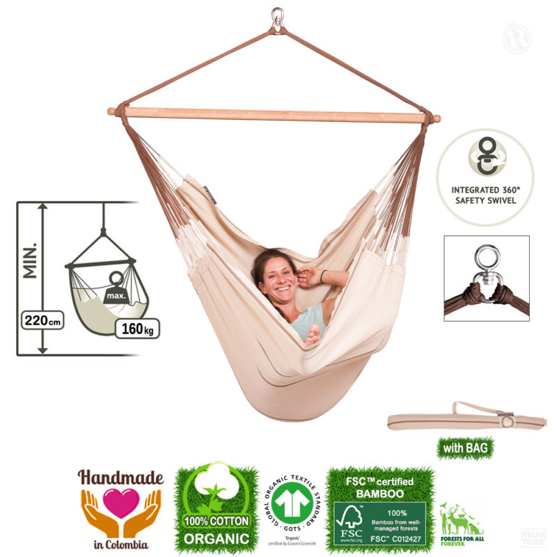 ![Habana Nougat: Eco-Lounger/Silla Hamaca XL [2p-K] 100%Algodón Bio+Madera FSC /Hecha a Mano - Imagen 4](https://relaxtribe.es/wp-content/uploads/habana-nougat-double-kingsize-xl-eco-lounger-hammock-chair-pure-organic-cotton-fsc-wood-handmade-white-ecru-brown-home-ceiling-500x500.jpg)